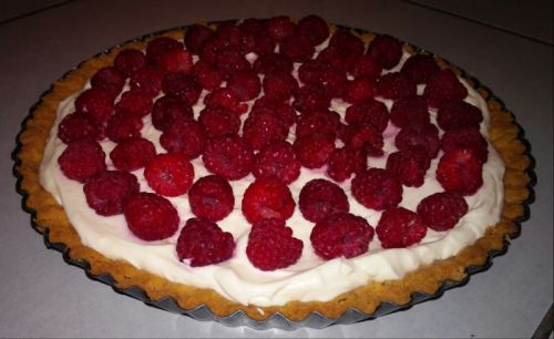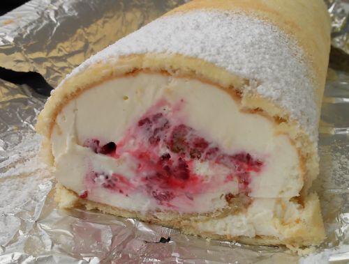 Dzisiaj przygotowałam pyszną roladę biszkoptową z kremem i malinami.